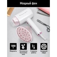 Фен для волос с насадками, 1800Вт, ИОН, диффузор! Компактный прибор из высококачественного термостойкого пластика с тремя режимами для выбора оптимальной температуры воздушного потока и технологией tourmaline ion, которая образует отрицательно заряженные ионы, снимает статический заряд с волос, делает их послушными и блестящими. Идеален, чтобы брать его с собой в дорогу или хранить в небольшом ящике с одеждой. Благодаря небольшому размеру фен занимает минимум места при хранении и транспортировке. Концентратор для укладки волос позволит точнее направлять воздушный поток, а насадка-диффузор придаст волосам дополнительный объём и обеспечит бережную сушку. Полную безопасность при использовании обеспечивает функция автоматического отключения при перегреве. Бытовая техника для дома Фены и приборы для укладки волос хороший подарок на новый год или подарок на 8 марта маме. фен для волос с насадками для дачи. Компактный, удобный для хранения и использования в качестве дорожный фен. Мощный фен будет актуальным подарком маме, бабушке, сестре на день рождения, юбилей, свадьбу и без повода.