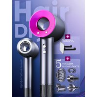 Фен, профессиональный, мощность 2500Вт, 5 в 1, ионизация, защита от перегрева, фуксия