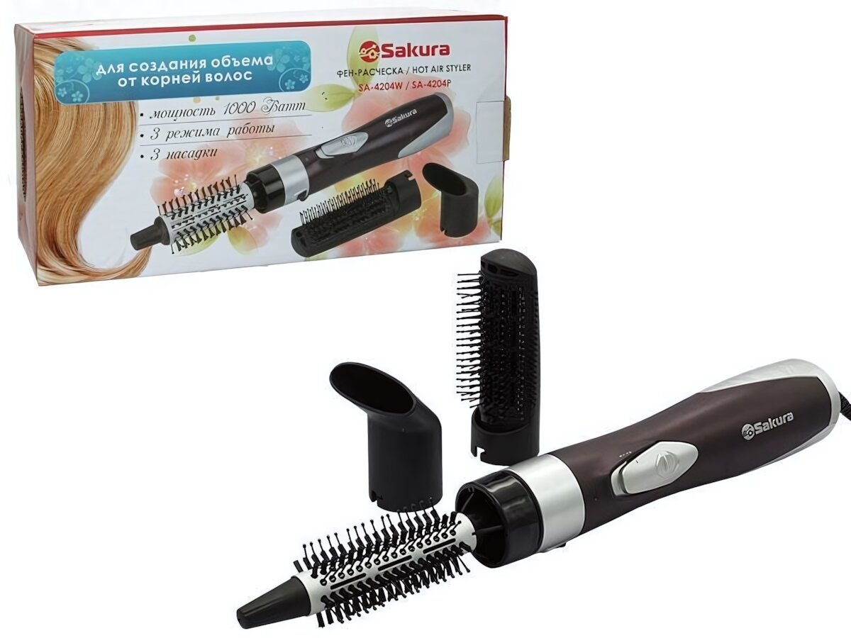 Купить Фен-расческа Sakura SA-4204P, 1000Вт, 3 насадки, черный/серебристый с доставкой по всей России. Фен-расческа Sakura SA-4204P, 1000Вт, 3 насадки, черный/серебристый: сравнение цен, характеристики, фото, актуальное наличие и цены.