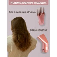 Фен-расчёска Gemei GM-4831, ионизация, 7 насадок, розовый, мощность 900Вт