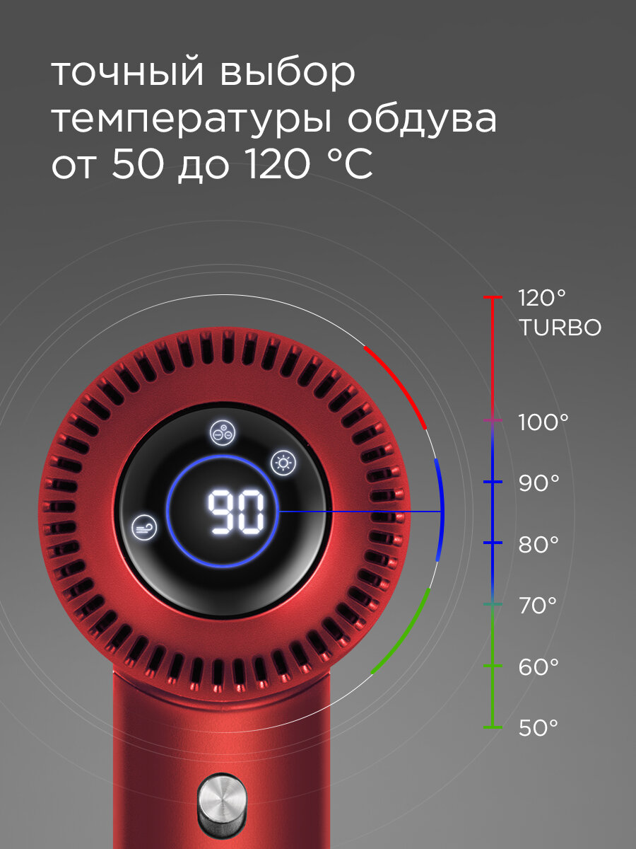 Технология MultiAir Легкий и компактный фен имеет 5 температурных режимов: с 50 до 120 градусов. Сами задавайте необходимые настройки, подходящие для вашего типа волос. Выбранная температура и режим обдува высветятся на ярком дисплее.