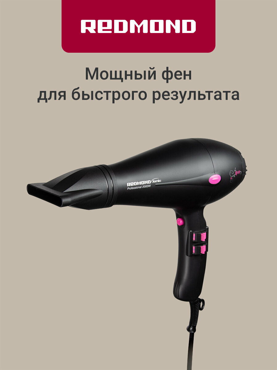 Купить Фен REDMOND RF-505, профессиональный AC мотор, 3 режима, холодный обдув, ионизация, 2000 Вт с доставкой по всей России. Фен REDMOND RF-505, профессиональный AC мотор, 3 режима, холодный обдув, ионизация, 2000 Вт: сравнение цен, характеристики, фото, актуальное наличие и цены.