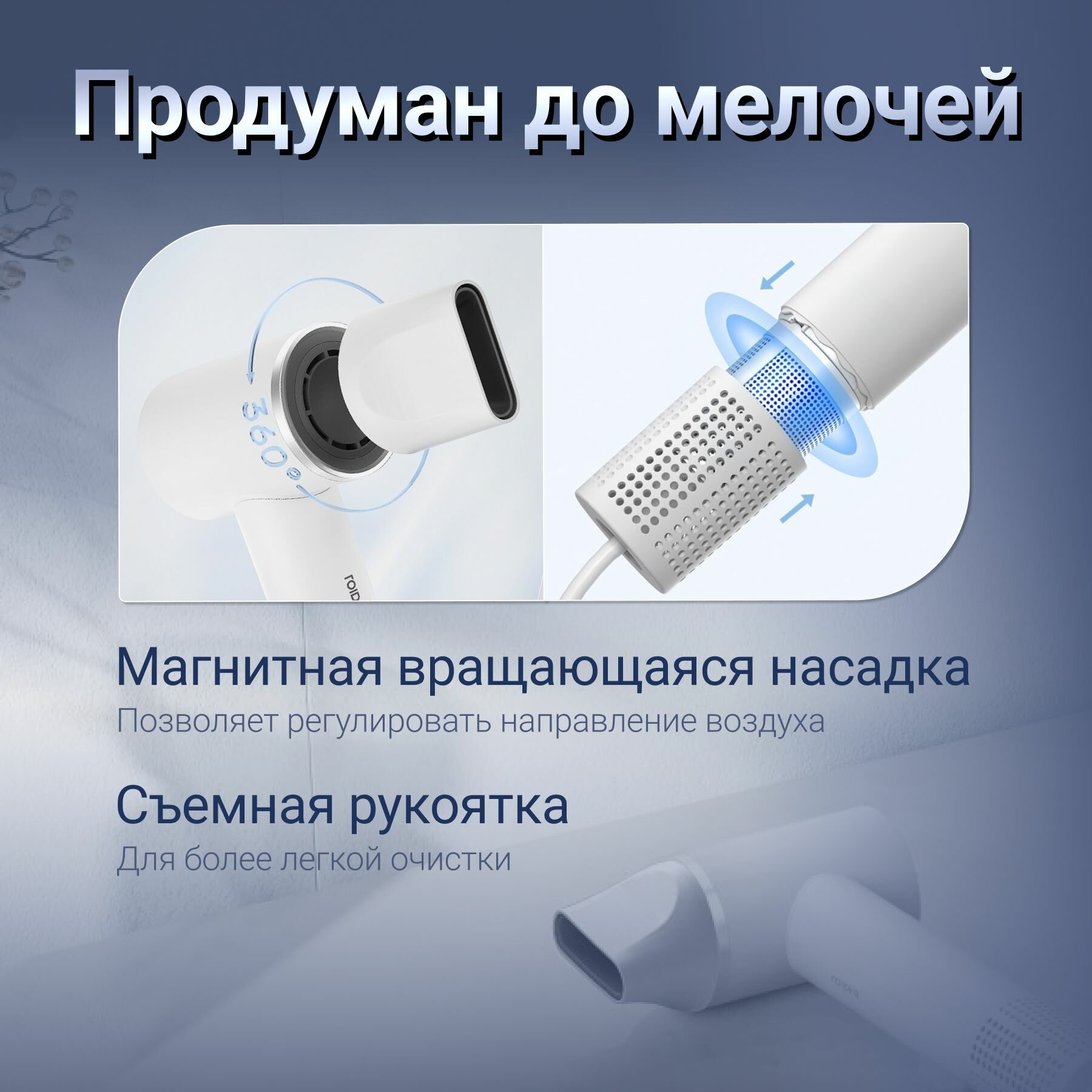 Фен Roidmi YoungLife Hair Dryer Miro, 1300 Вт, 6 режимов, ионизация, дисплей, концентратор, белый, дорожный: сравнение цен, характеристики, фото, актуальное наличие и цены.