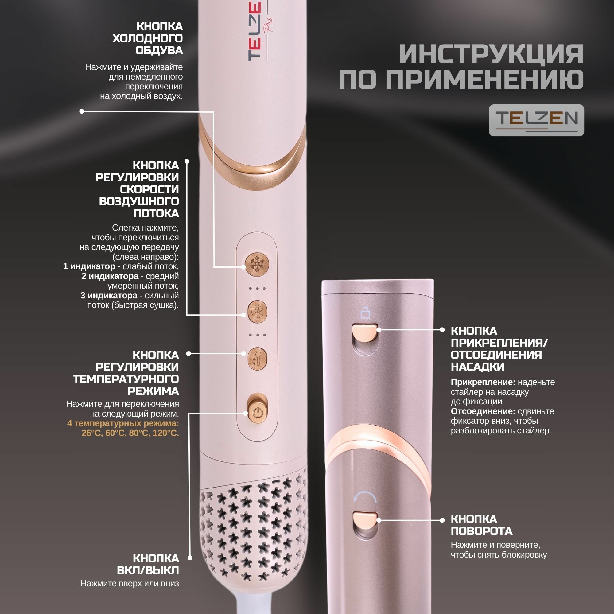 Профессиональный фен с насадками Telzen - это уникальное устройство, которое превратит укладку волос в увлекательный процесс. Благодаря множеству насадок, вы сможете не только сушить волосы, но и создавать стильные и современные прически.
