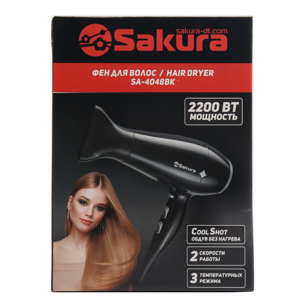 Фен Sakura 2200Вт 2 скорости 3 режима холодной сушки – компактный, черный, пластик: сравнение цен, характеристики, фото, актуальное наличие и цены.