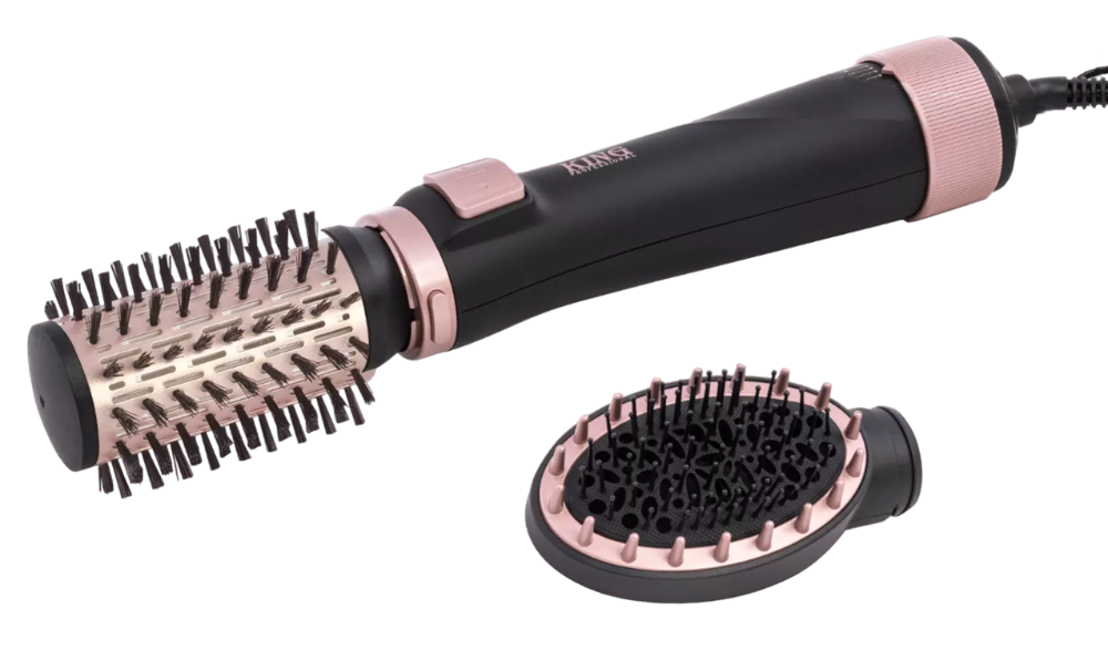 Купить Фен-щетка для укладки волос с вращением и ионизацией King Professional 5в1 kp-6003, черный/розовое золото с доставкой по всей России.