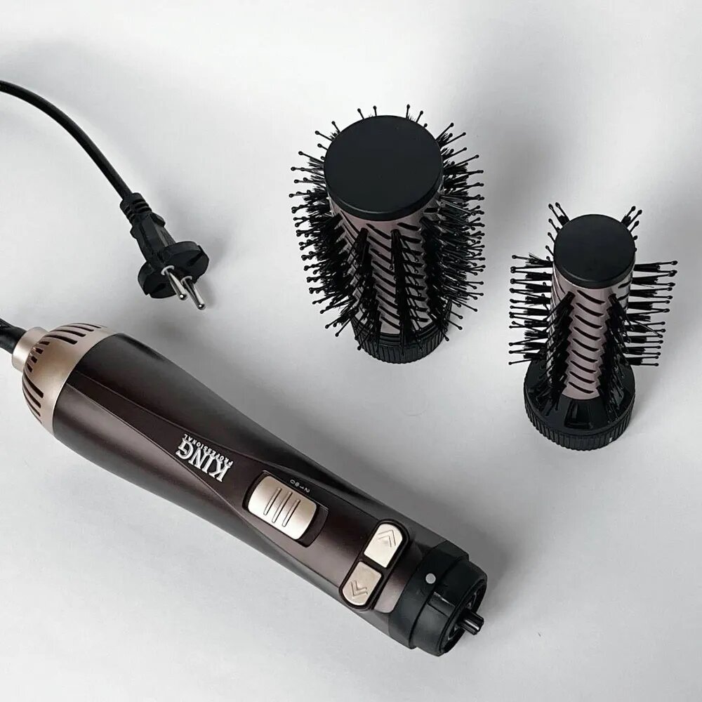 Купить Фен-щетка для сушки волос KING KP-6032 с вращением, 2 насадки / Стайлер для завивки автоматический вращающийся с доставкой по всей России.