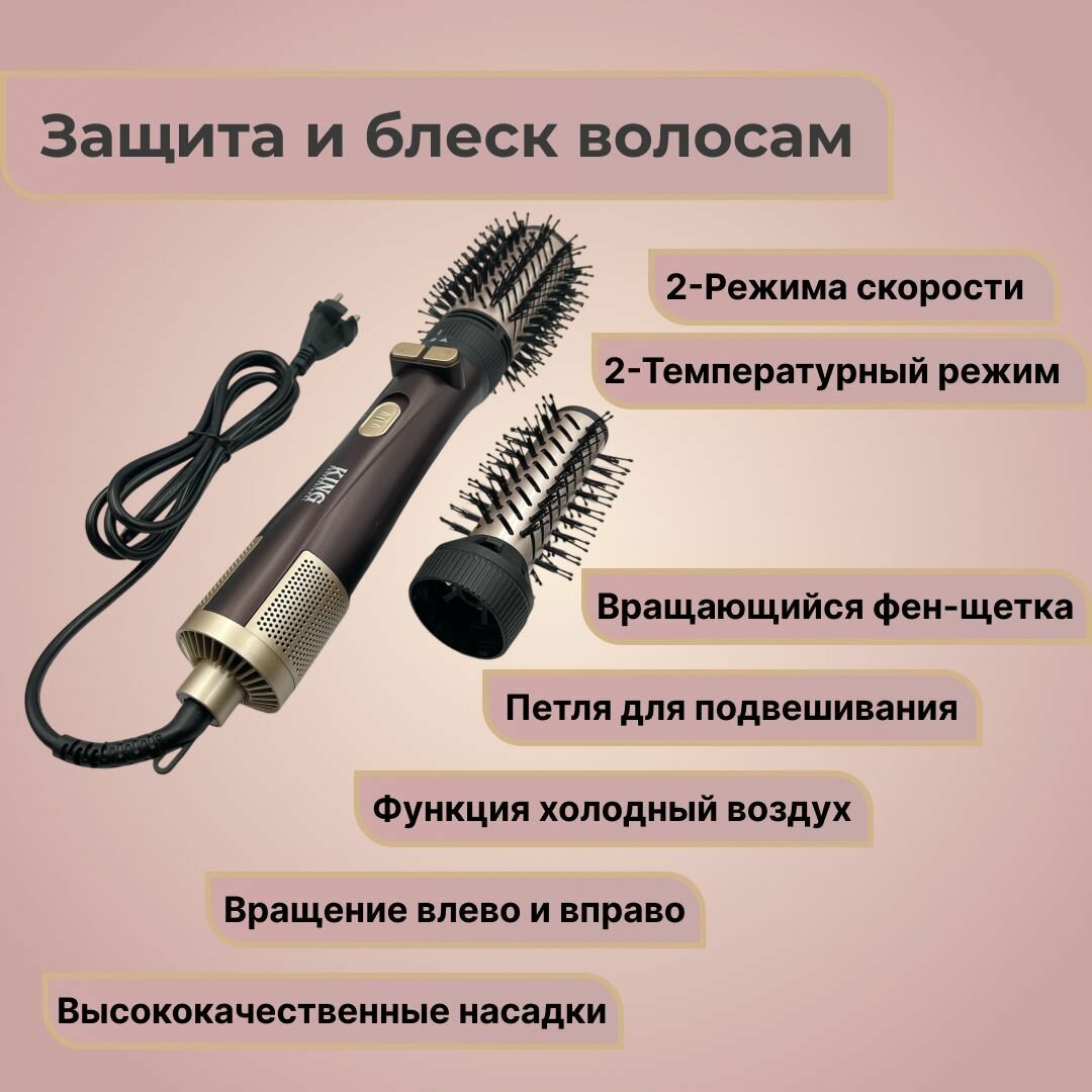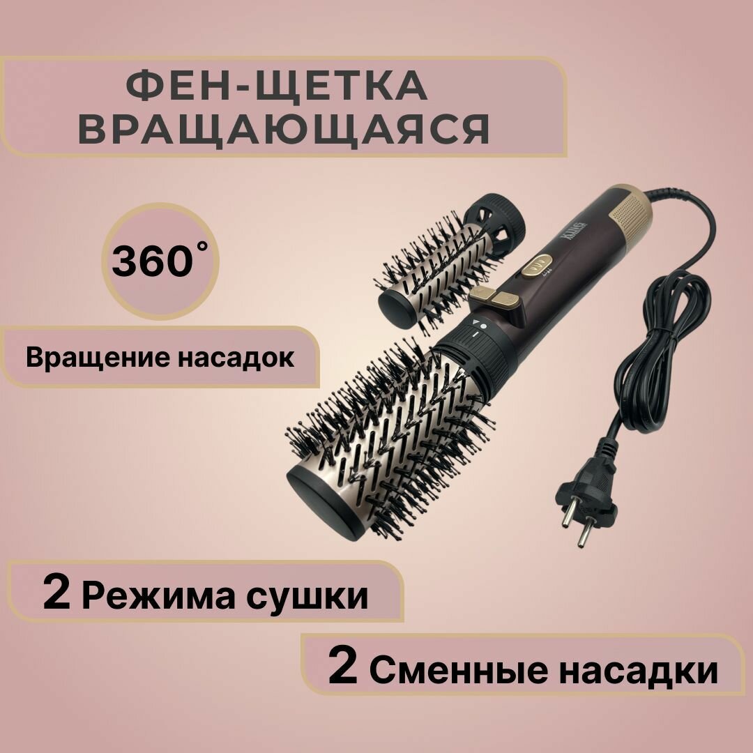 Фен-Щетка для волос профессиональная вращающаяся 1800Вт с двумя насадками