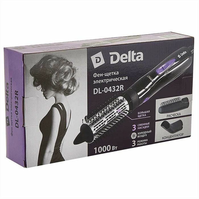 Купить Фен-щетка электрический 1000 Вт, 3 насадки DELTA DL-0432R черный с фиолетовым с доставкой по всей России. Фен-щетка электрический 1000 Вт, 3 насадки DELTA DL-0432R черный с фиолетовым: сравнение цен, характеристики, фото, актуальное наличие и цены.