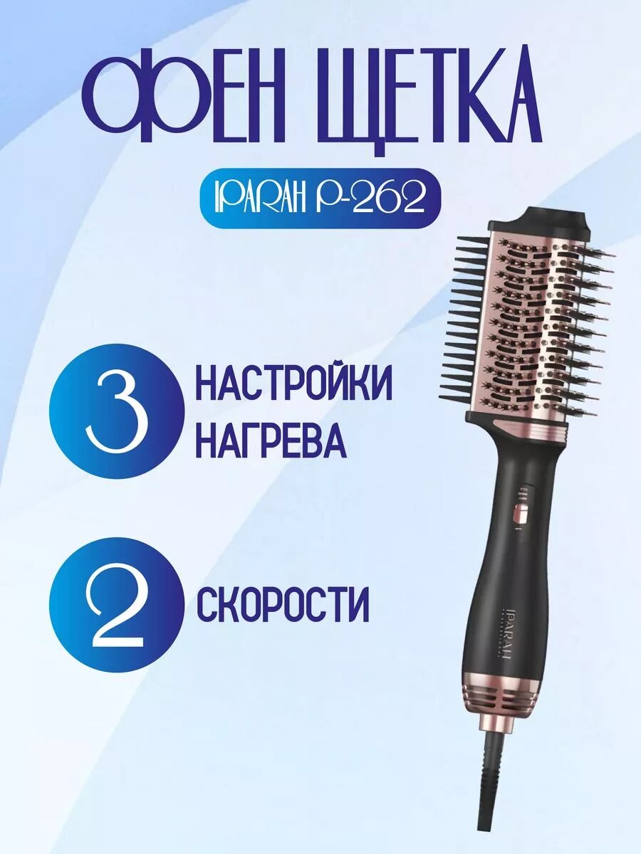 Фен-щетка IPARAH P-262, вращение шнура, 2 скорости, 3 уровня температуры, черный: сравнение цен, характеристики, фото, актуальное наличие и цены.