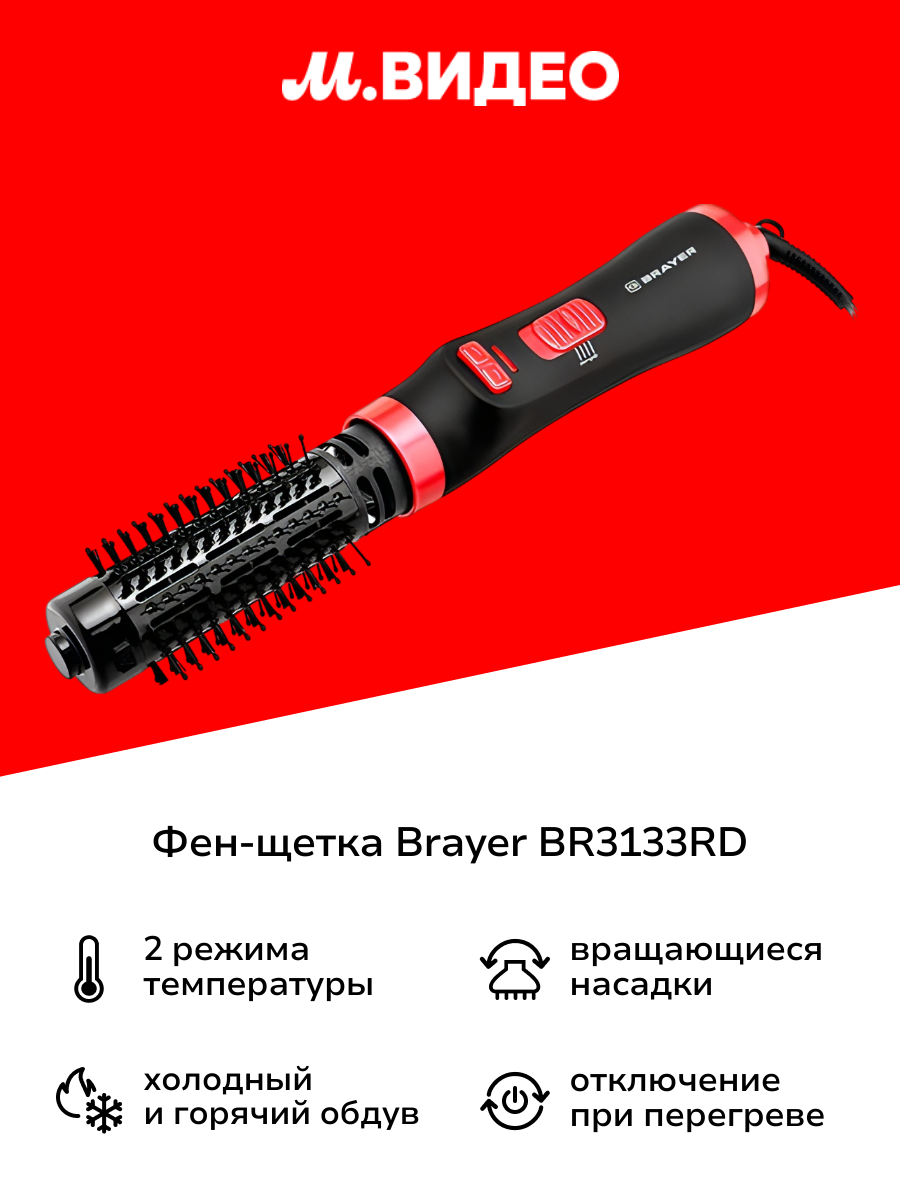 Купить Фен-щетка Brayer BR3133RD с доставкой по всей России. Фен-щетка Brayer BR3133RD: сравнение цен, характеристики, фото, актуальное наличие и цены.
