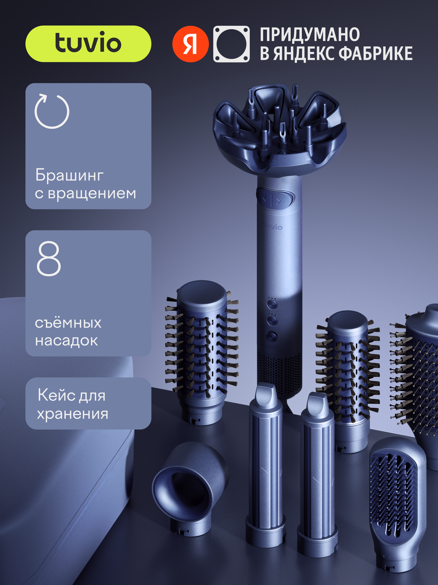 Купить Фен-щётка с вращением для волос Tuvio HBI1417, 8 насадок, кейс для хранения с доставкой по всей России.