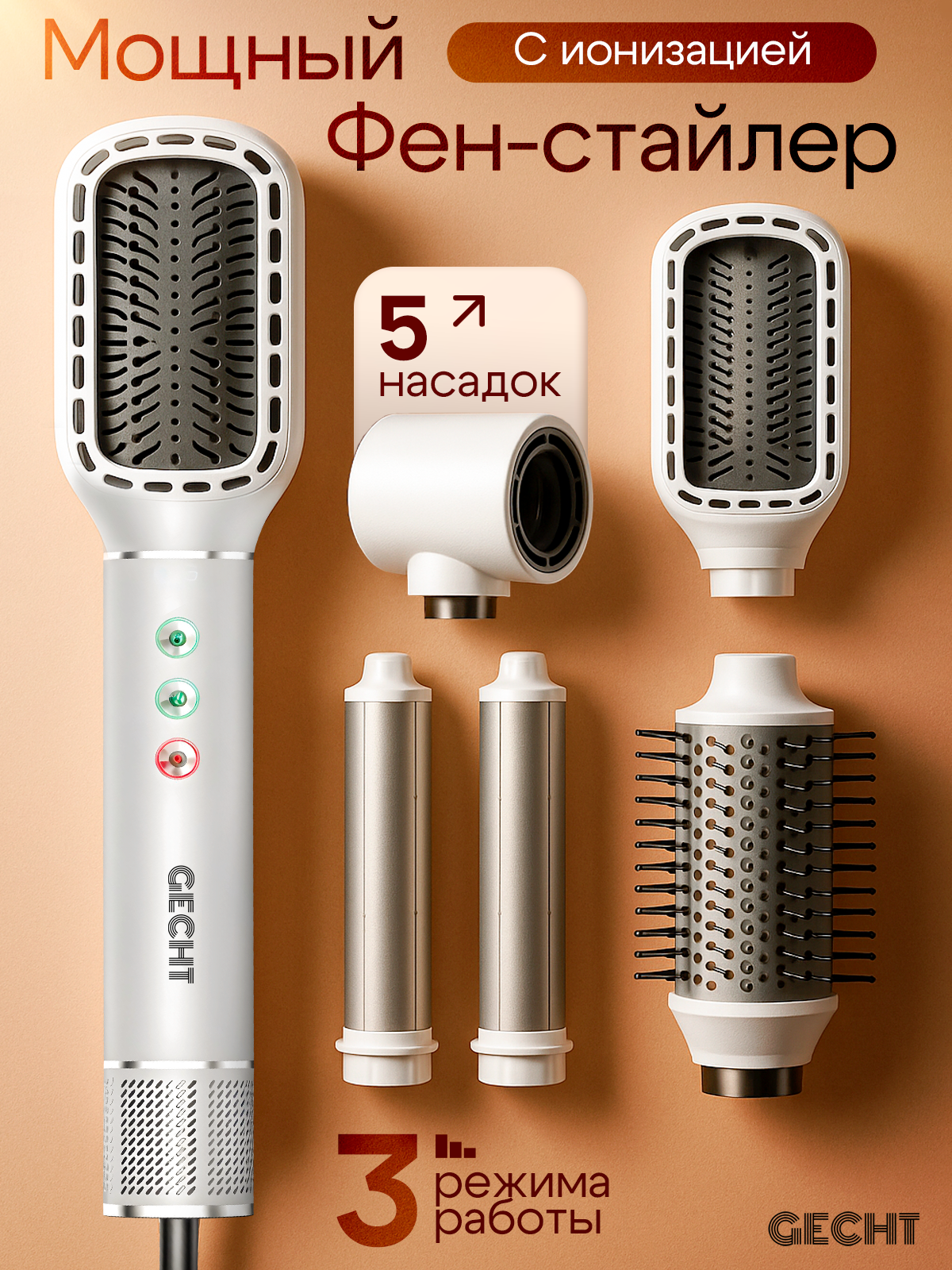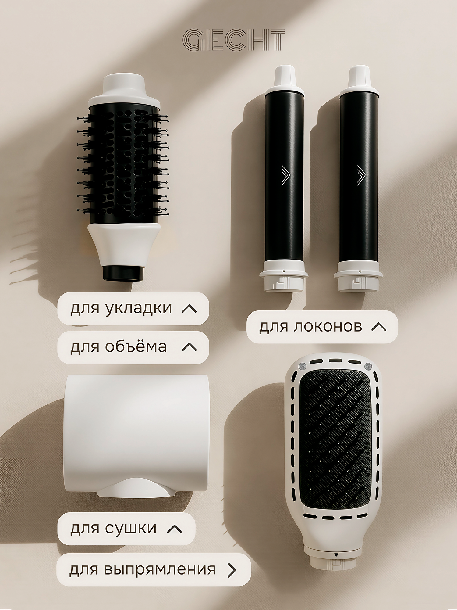 | Насадки | для бережного высушивания, для выпрямления, для непослушных волос, для спиральной укладки, концентратор, направленный поток, расческа, цилиндрическая, щетка |