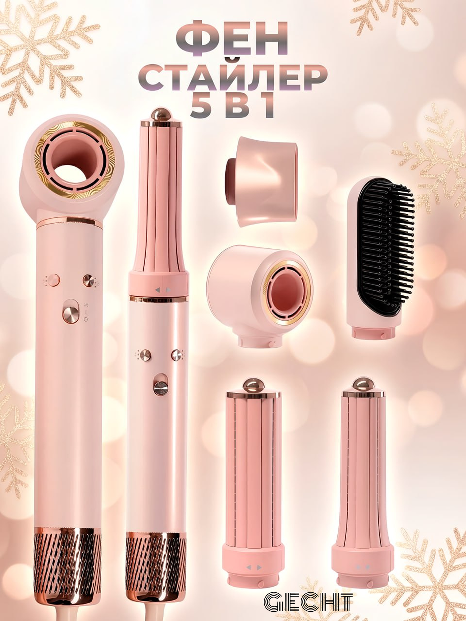 Фен стайлер для волос Gecht профессиональный, 5 насадок для сушки и укладки, ионизация, BLDC мотор, 5в1, розовый: сравнение цен, характеристики, фото, актуальное наличие и цены.
