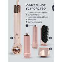 Фен стайлер для волос Gecht профессиональный, 5 насадок для сушки и укладки, ионизация, BLDC мотор, 5в1, розовый