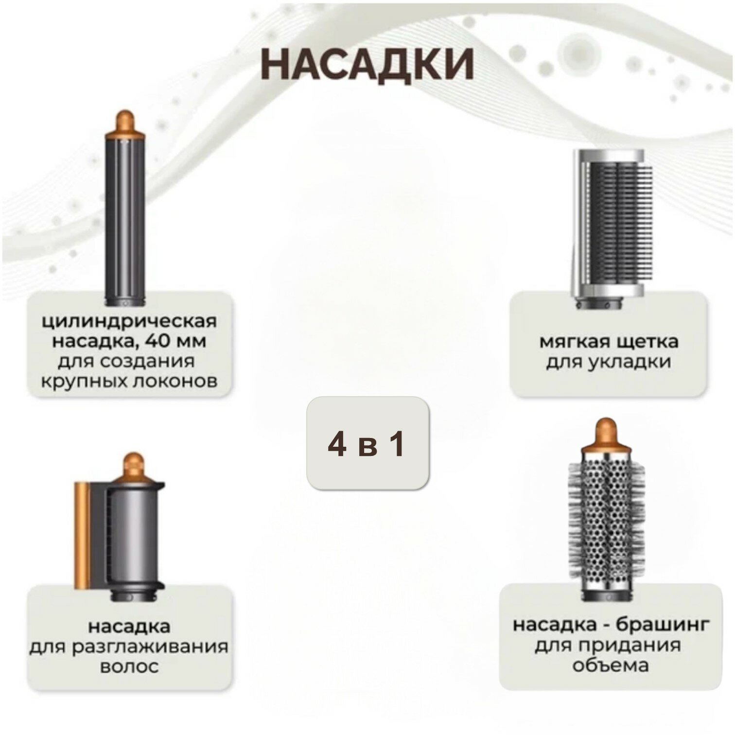 | Насадки в комплекте | гофре, для выпрямления, для спиральной укладки, конические щипцы, щетка, щипцы для завивки |