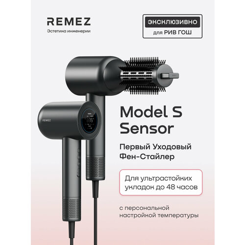 Сенсорный REMEZ Model S Первый Уходовый Фен-Стайлер с персональной настройкой температуры для быстрой сушки и формирования инновационно стойких укладок, которые держатся до 48 часов на любых волосах.
