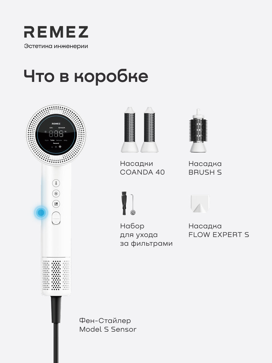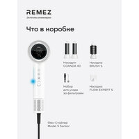 Фен-стайлер для волос профессиональный REMEZ Model S SENSOR RMB-708GA (насадки для локонов, насадка Браш, концентратор)