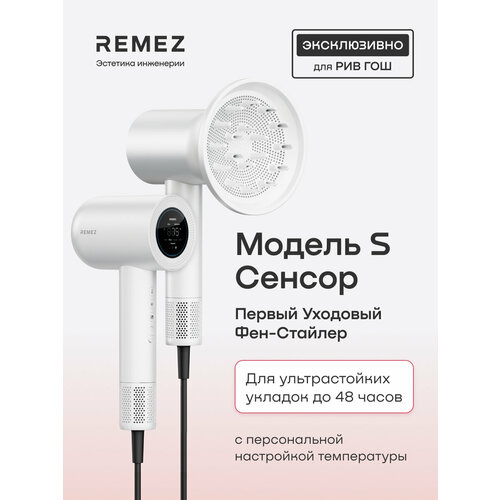 Сенсорный REMEZ Модель S (Model S Sensor), арт. RMB-708RG, Первый Уходовый Фен-Стайлер с персональной настройкой температуры для быстрой сушки и формирования инновационно стойких укладок, которые держатся до 48 часов на любых волосах.