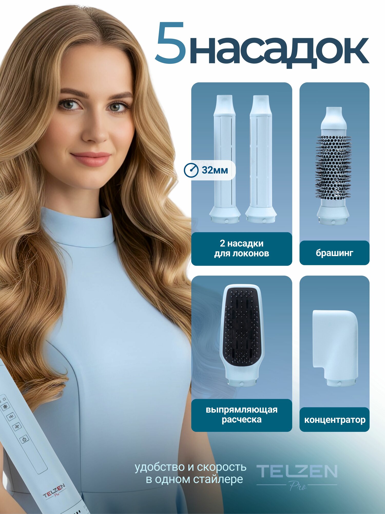 Купить Фен-стайлер для волос с 5 насадками, Фен c ионизацией для укладки волос 5 В 1 TELZEN с доставкой по всей России.