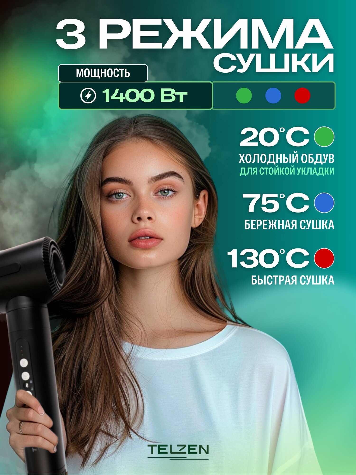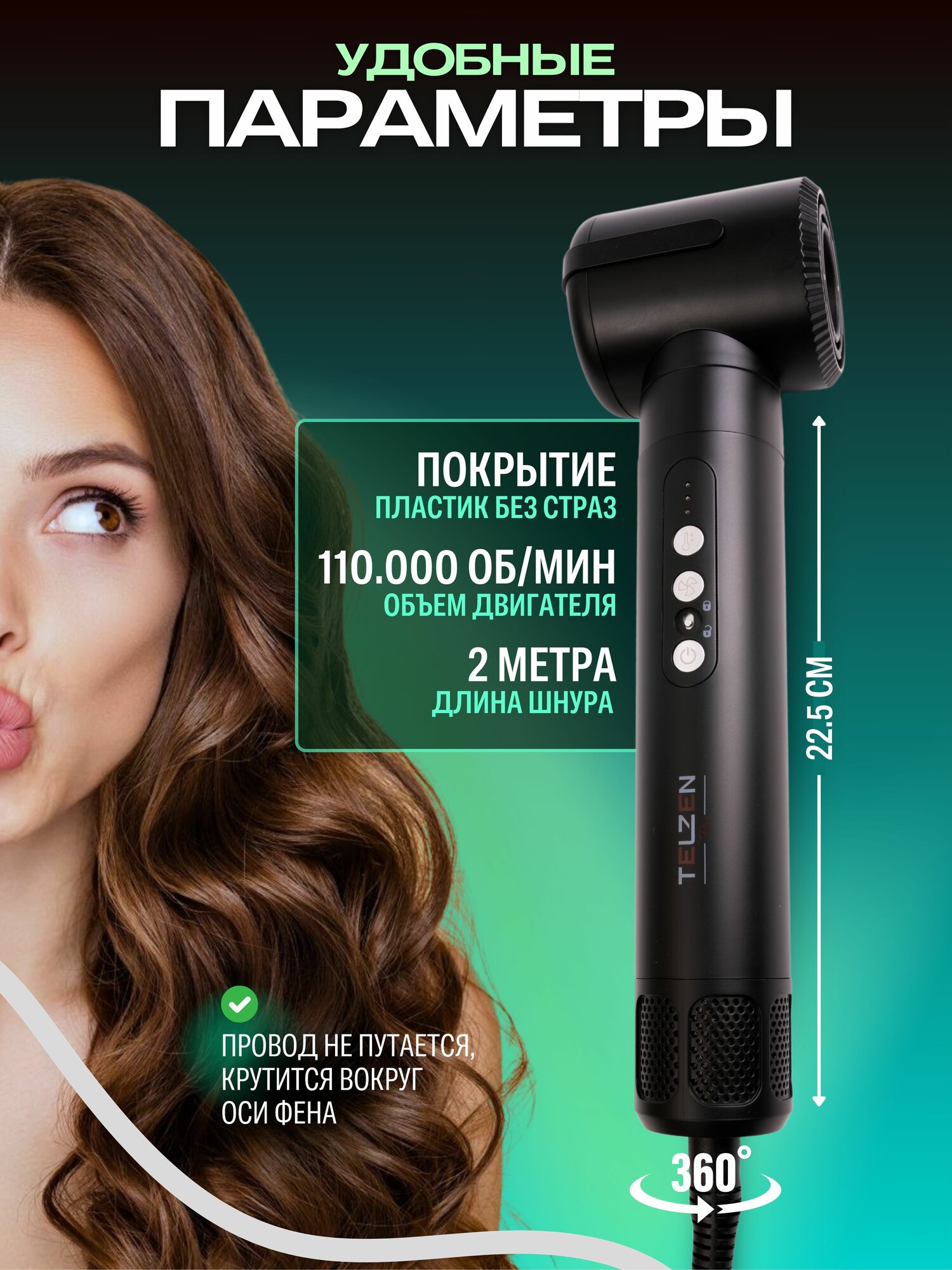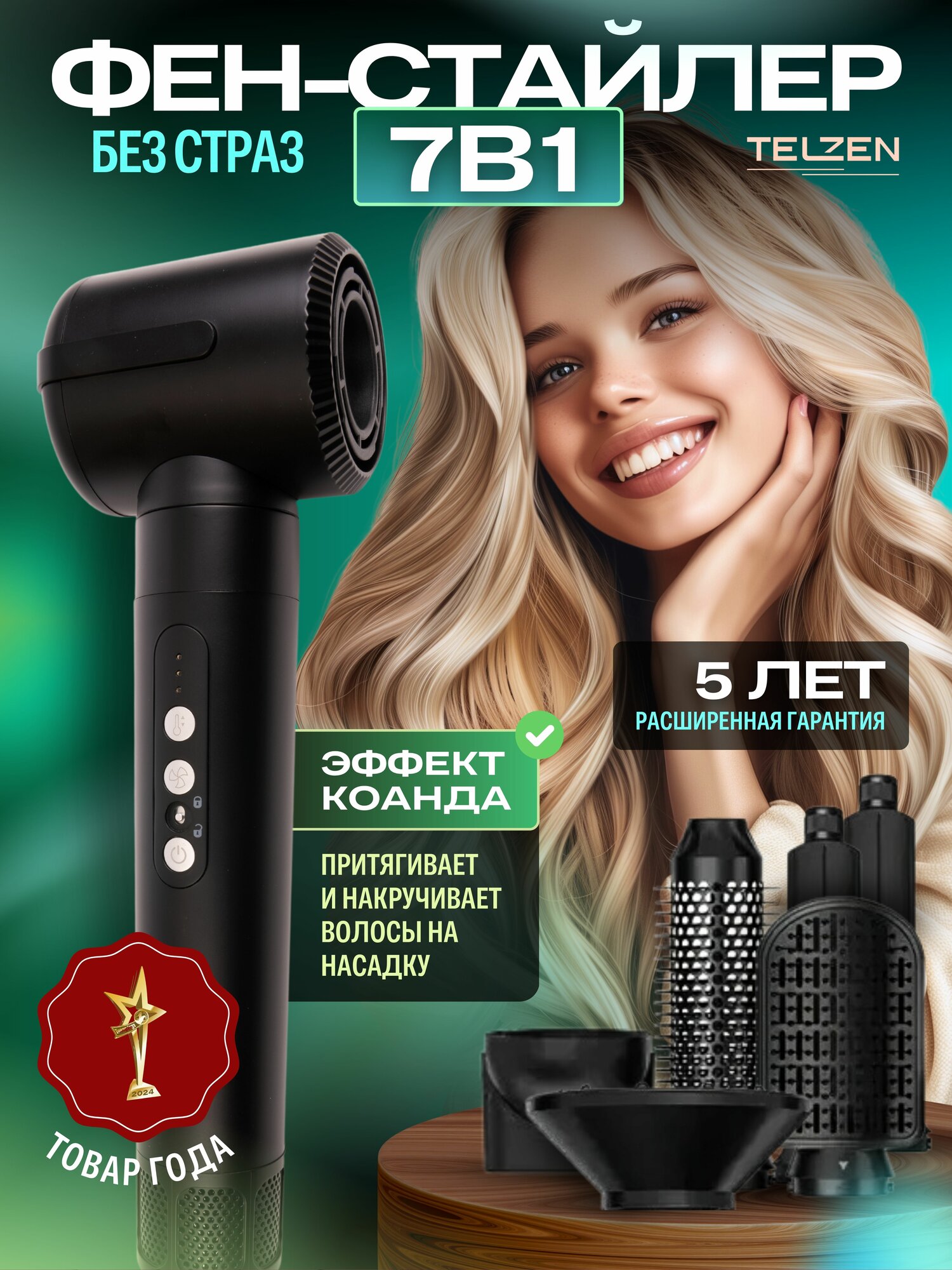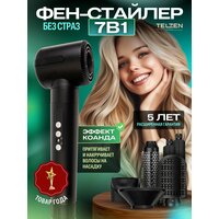 Высокоскоростной фен-стайлер-настоящая находка для тех, кто хочет создавать идеальную прическу без труда. 7 сменных насадок, встроенный ионизатор и инновационные технологии делают его незаменимым для создания разнообразных причесок: от идеального выпрямления до объемных локонов, мягких волн или прикорневого объема. Фен с диффузором подходит для всех типов волос-коротких, длинных, прямых, кудрявых, тонких или густых, обеспечивая бережный уход без пересушивания. 7 температурных режимов и 3 скорости воздушного потока позволяют настроить устройство под любую текстуру волос, сохраняя их естественную влагу и эластичность. Благодаря технологии ионизации пряди становятся гладкими и блестящими. Функция холодного обдува фиксирует укладку, а защита от перегрева гарантирует безопасность даже при длительной эксплуатации. В комплект входят 7 насадок: круглая насадка обеспечивает быструю и равномерную сушку, а насадки Коанда создают упругие локоны за счет воздушного потока. Брашинг идеален для создания объёма у корней, а плоская щетка разглаживает даже жесткие волосы. Диффузор подчеркивает естественные кудри и формирует воздушные волны, концентратор с узкой щелью позволяет точечно направлять воздух для точной укладки. Длинный вращающийся шнур на 360° не ограничивает движения, а компактный размер делает устройство удобным для путешествий. В комплекте предусмотрена защитная перчатка. Подойдёт в качестве подарка маме, жене, любимой девушке, сестре, коллеге на 8 Марта, день рождения или юбилей. Профессиональный стайлер заменяет целый арсенал инструментов. Он не только создает профессиональные укладки, но и заботится о здоровье волос, сохраняя их структуру и блеск. Роскошные локоны, идеально прямые пряди, объем у корней-любая прическа станет реальностью за считанные минуты. Объединив инновации, мощность и эргономику, стайлер доказывает: безупречный стиль и бережный уход за волосами доступны каждому. Подарите себе свободу экспериментов и уверенность в идеальном образе каждый день вместе с Telzen!