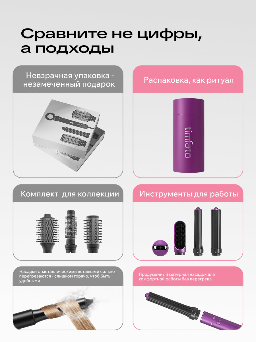 Купить Фен-стайлер для волос TIMFATO 1300Вт, фиолетовый, ионизация, 3 скорости, 5 насадок с доставкой по всей России. Фен-стайлер для волос TIMFATO 1300Вт, фиолетовый, ионизация, 3 скорости, 5 насадок: сравнение цен, характеристики, фото, актуальное наличие и цены.