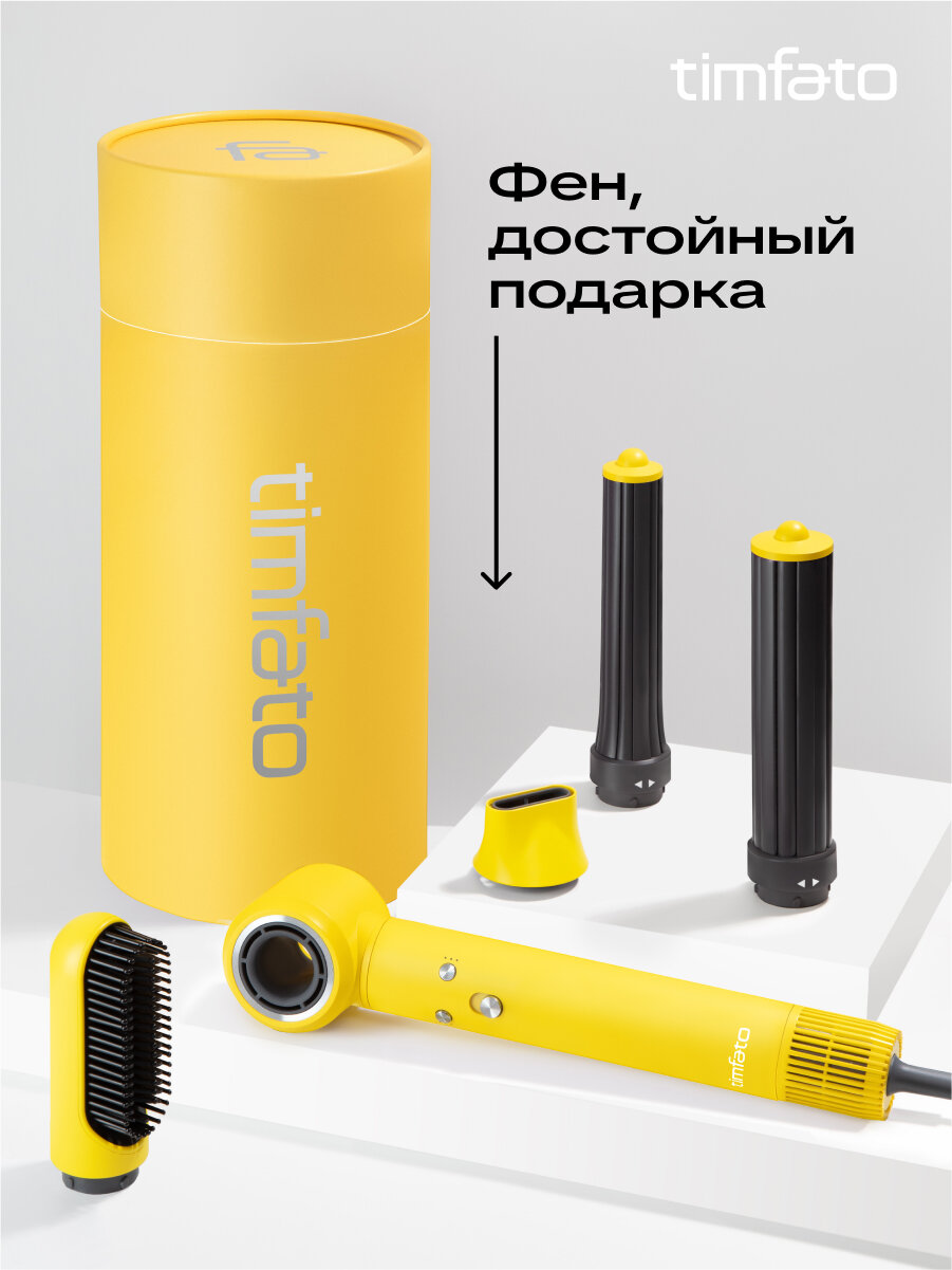 Купить Фен-стайлер для волос TIMFATO 1300Вт, желтый , ионизация, 3 скорости, 5 насадок с доставкой по всей России. Фен-стайлер для волос TIMFATO 1300Вт, желтый , ионизация, 3 скорости, 5 насадок: сравнение цен, характеристики, фото, актуальное наличие и цены.
