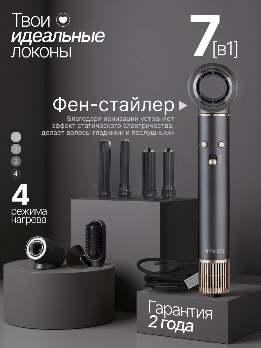 Фен стайлер для волос TRESSA, 1300 Вт, с 7 насадками для сушки и укладки кудрей / фен с ионизацией для завивки локонов: сравнение цен, характеристики, фото, актуальное наличие и цены.