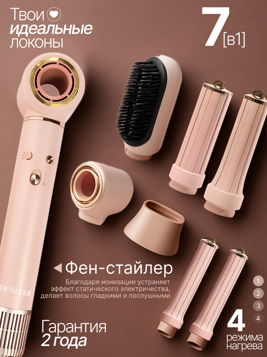 Фен стайлер для волос TRESSA, 1300 Вт, с 7 насадками для сушки и укладки кудрей / фен с ионизацией для завивки локонов: сравнение цен, характеристики, фото, актуальное наличие и цены.