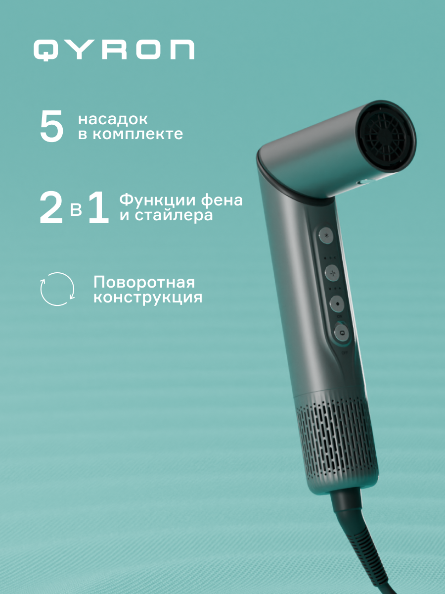 Фен стайлер QYRON AS601, с ионизацией, 5 насадок, 3 скорости, 3 температуры: сравнение цен, характеристики, фото, актуальное наличие и цены.
