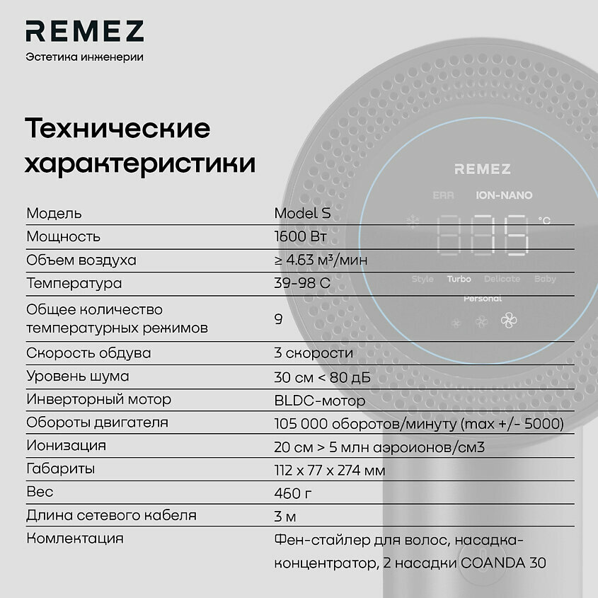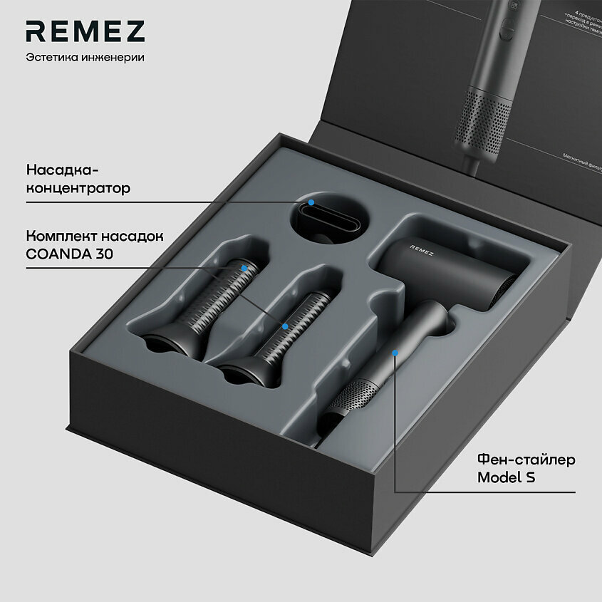 Фен-стайлер с персональной настройкой температуры и магнитными насадками MODEL S RMB-707, Черный: сравнение цен, характеристики, фото, актуальное наличие и цены.