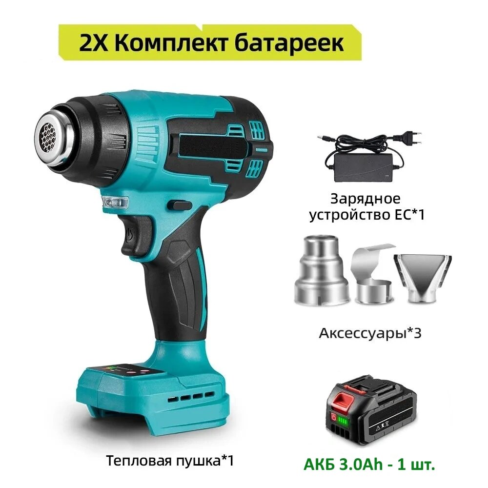 Купить Фен строительный с регулировкой температуры и скорости аккумуляторный 21V, 1 АКБ 3.0 Ah, 3 насадки с доставкой по всей России. Фен строительный с регулировкой температуры и скорости аккумуляторный 21V, 1 АКБ 3.0 Ah, 3 насадки: сравнение цен, характеристики, фото, актуальное наличие и цены.