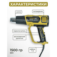 Фен строительный ZORGEPRO - мощный и функциональный инструмент, который станет незаменимым помощником в строительных и ремонтных работах. Мощность и регулировка температуры: Фен ZORGEPRO обладает мощностью 2400 Вт, что обеспечивает быстрый и эффективный нагрев до 650 градусов. Плавная регулировка температуры позволяет точно настроить рабочий режим для выполнения различных задач. Дисплей и защита от перегрева: Встроенный дисплей облегчает контроль за рабочими параметрами и предотвращает перегрев устройства. Регулировка потока воздуха и набор насадок: Фен ZORGEPRO оснащен функцией регулировки потока воздуха, что позволяет контролировать интенсивность подачи тепла и обеспечивает точность работы. В комплекте с феном идут 5 насадок, включая плоское сопло, редукционную насадку, рефлекторное сопло, широкую насадку и насадку для удаления припоя. Применение строительного фена ZORGEPRO: Подсушивание краски, разморозка труб, размягчение покрытий, удаление краски, изоляция проводов. Упаковка и вес: Фен поставляется в удобном кейсе, что обеспечивает безопасное хранение и транспортировку инструмента. Вес фена составляет всего 1 кг, что делает его легким и удобным для использования. Выбирая строительный фен ZORGEPRO, вы получаете надежный и функциональный инструмент, который поможет вам справиться с различными задачами на строительной площадке или в домашних условиях.