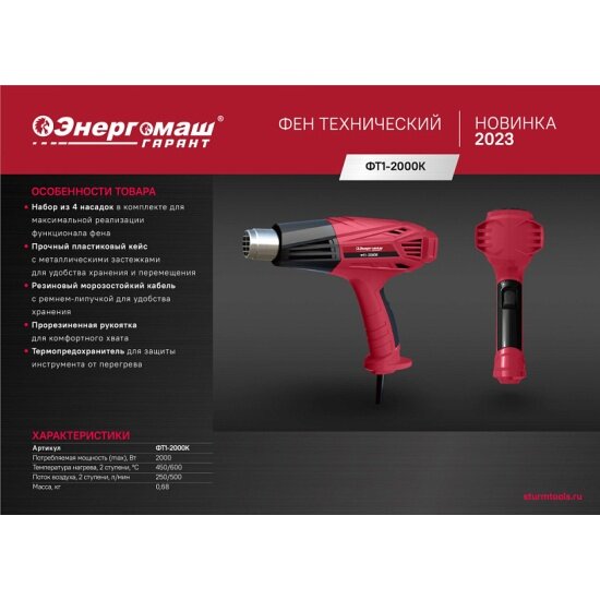Купить Фен технический Энергомаш Гарант ФТ1-2000К с доставкой по всей России. Фен технический Энергомаш Гарант ФТ1-2000К: сравнение цен, характеристики, фото, актуальное наличие и цены.