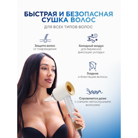 Профессиональный фен - мощный прибор быстро высушивает, придает объем, создает красивую укладку. Комплект из 5 насадок, 4 уровня нагрева, 3 скорости! Нагрев до 100 градусов быстро высушивает мокрые волосы, 80 градусов (стандартный уход), 60 градусов (бережная сушка теплым воздухом), 28 градусов (обдув холодным воздухом). Набор сменных магнитных насадок: круглая насадка (бережное высушивание), диффузор, насадка для направленного воздушного потока с широким соплом, для непослушных волос и концентратор с узким соплом. У модели длинный шнур (кабель - провод) - можно использовать компактный прибор с комфортом, с полной свободой движений, даже если электрическая розетка далеко. Переключатели функций управляются удобными кнопками на корпусе фена. Плюсы: функции ионизации, защита от перегрева, фен с диффузором для кудрей сушит и ухаживает за волосами, защищает от повреждения прядей и воздействия высоких температур. Универсальный электронный прибор мощностью 2500 Вт удобно использовать дома, как дорожный фен и в путешествиях. Бытовая техника удобной формы подходит для всех типов волос и кожи головы: нормальных, сухих, жирных, вьющихся, кудрявых, прямых, волнистых, пушистых, тонких, коротких, длинных, локонов средней длины, любой густоты. Бесшумный портативный прибор с несколькими насадками для разных типов волос и для укладки объемной челки подойдет для взрослых женщин, мужчин, парней, девушек, девочек, мальчиков, подростков. Профессиональный ручной маленький фен для ухода в домашних условиях! Многофункциональный фен стайлер с регулировкой температуры высушивания для красоты и здоровья волос удобно держать в руках, он легкий и тихий. Фен упакован в большую картонную коробку. Перед отправкой проходит проверку на работоспособность.