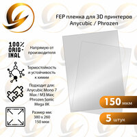 FEP-плёнка используется в 3D-принтерах с технологией LCD/DLP/SLA для создания прозрачного слоя между источником света и смолой в ванне. Обеспечивает высокую светопропускаемость, устойчивость к высоким температурам и отличную химическую стойкость. Обладает низкой адгезией, что способствует лёгкому отсоединению отверждённого слоя смолы. Совместима с большинством смоляных 3D-принтеров.