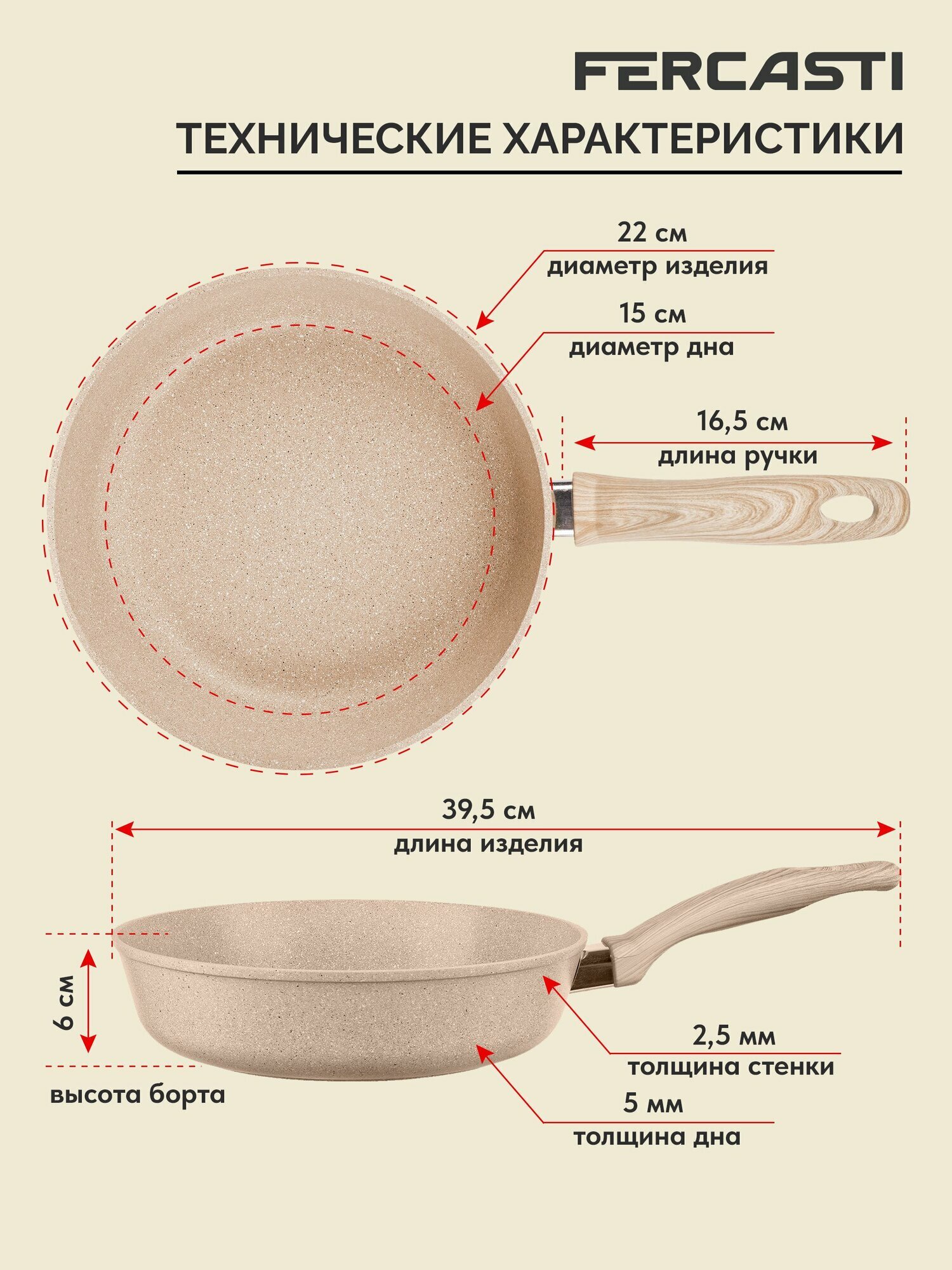 FERCASTI Сковорода 22 см с крышкой антипригарная литая алюминиевая, для газовых и электрических типов плит: сравнение цен, характеристики, фото, актуальное наличие и цены.