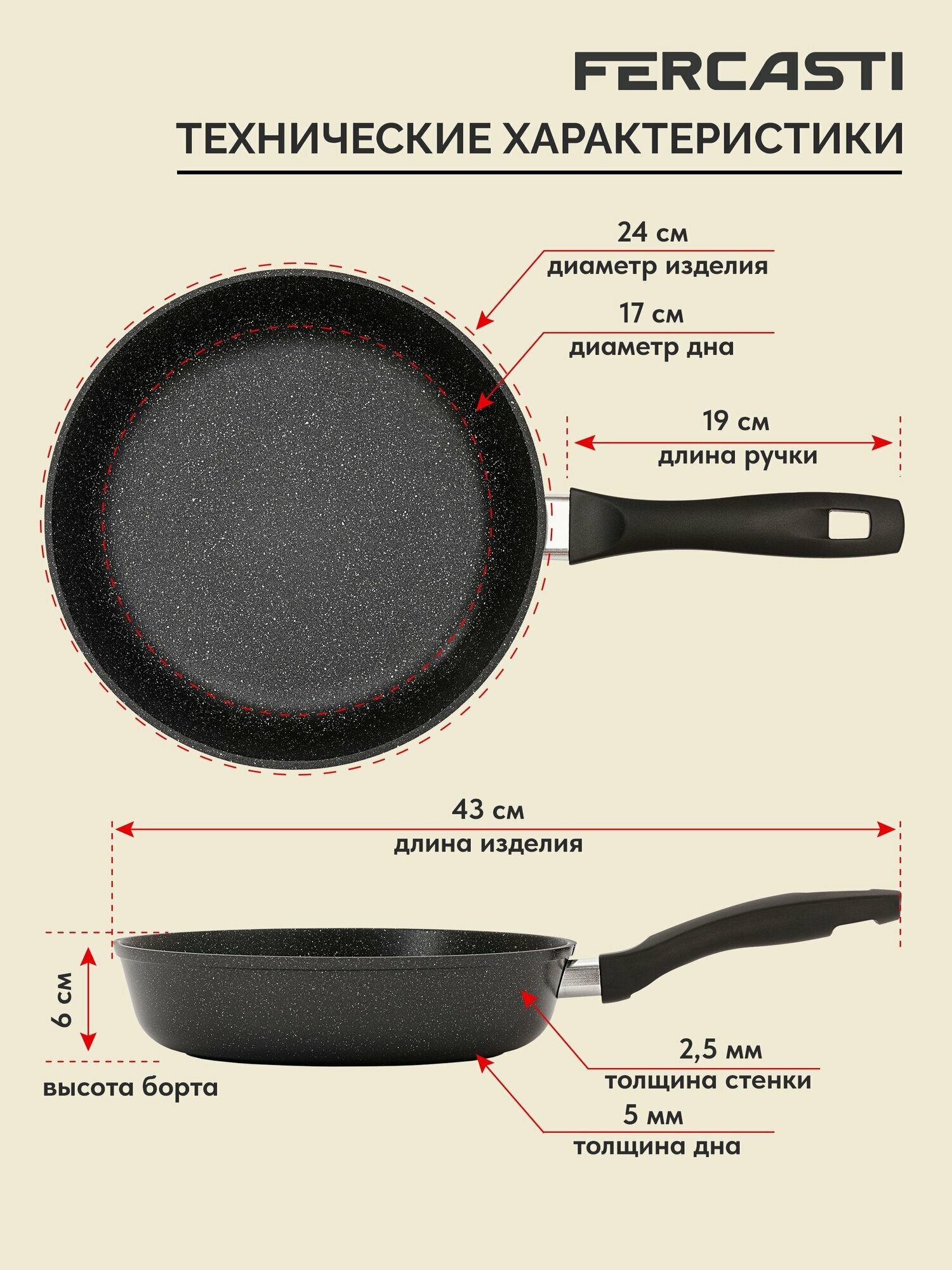 FERCASTI Сковорода 24 см с крышкой антипригарная литая алюминиевая, для газовых и электрических типов плит: сравнение цен, характеристики, фото, актуальное наличие и цены.