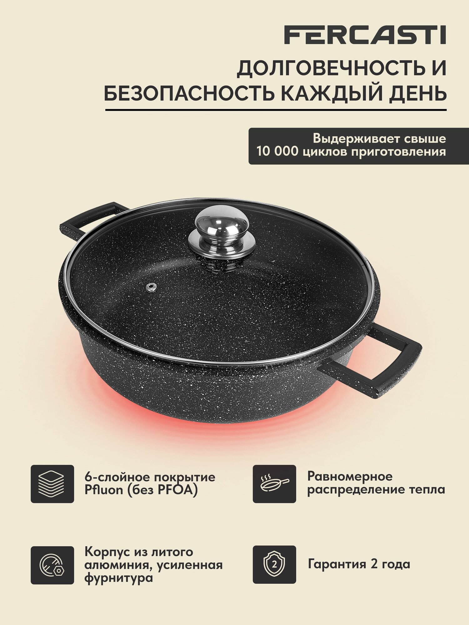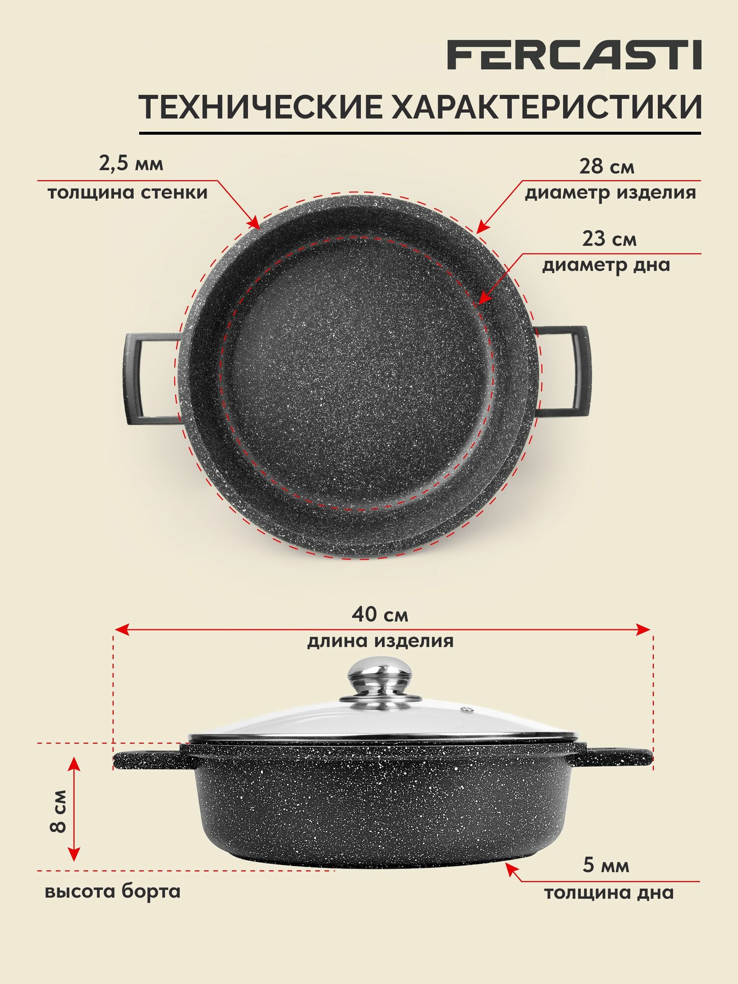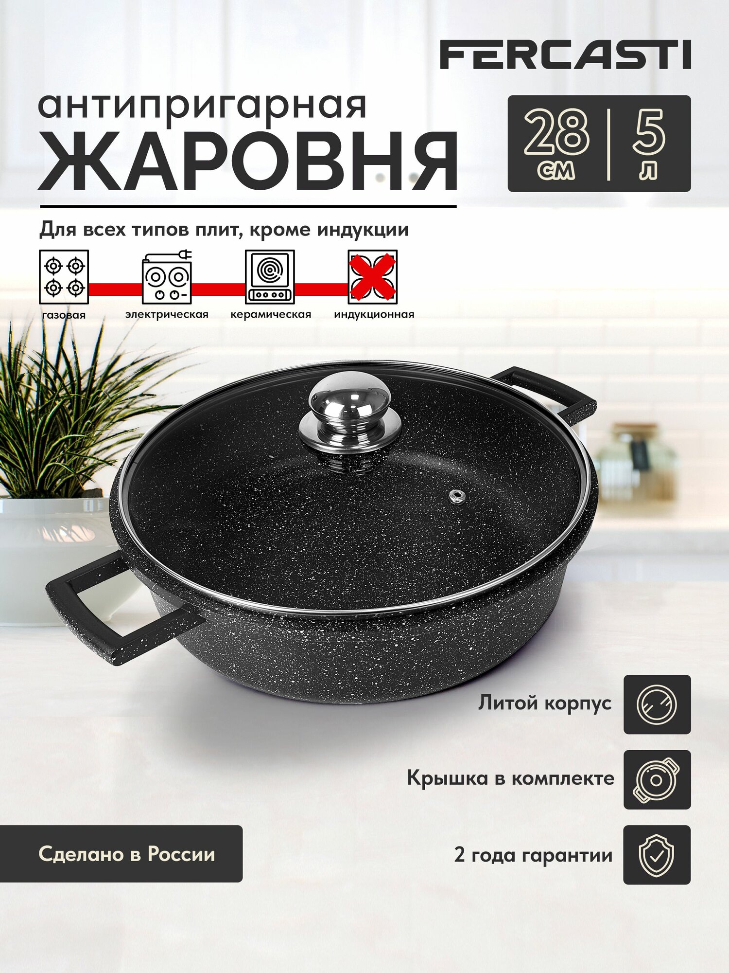 FERCASTI Сотейник — жаровня с крышкой 28 см, алюминий, антипригарное покрытие, 5 литров, плиты: газ и электрические: сравнение цен, характеристики, фото, актуальное наличие и цены.