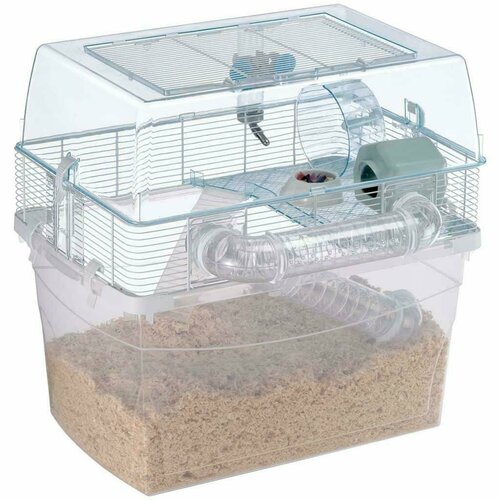 Клетка Duna Space произведена из высокопрочного пластика и металла. Верх клетки легко поднимаемся и обеспечивает быстрый доступ к грызуну. Модель имеет глубокий поддон из прозрачного пластика, который позволяет наблюдать за грызуном.