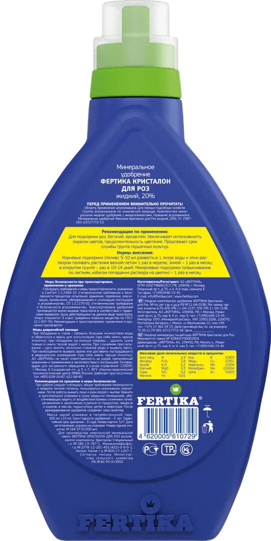 Купить Фертика Кристалон для роз жидкая 0.5 л с доставкой по всей России. Фертика Кристалон для роз жидкая 0.5 л: сравнение цен, характеристики, фото, актуальное наличие и цены.