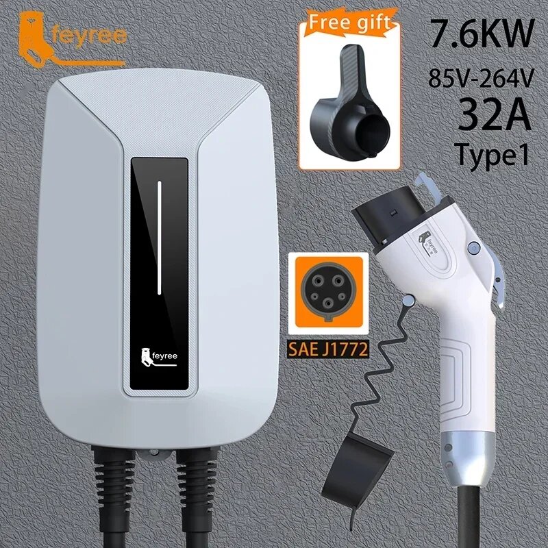 Feyree Зарядное устройство для электромобилей Type2 Кабель EVSE Wallbox 32A 7KW IEC62196-2 Разъем 1 фаза 5 м Кабель Настенная зарядная станция для электромобиля, GBT 32A 7KW: сравнение цен, характеристики, фото, актуальное наличие и цены.