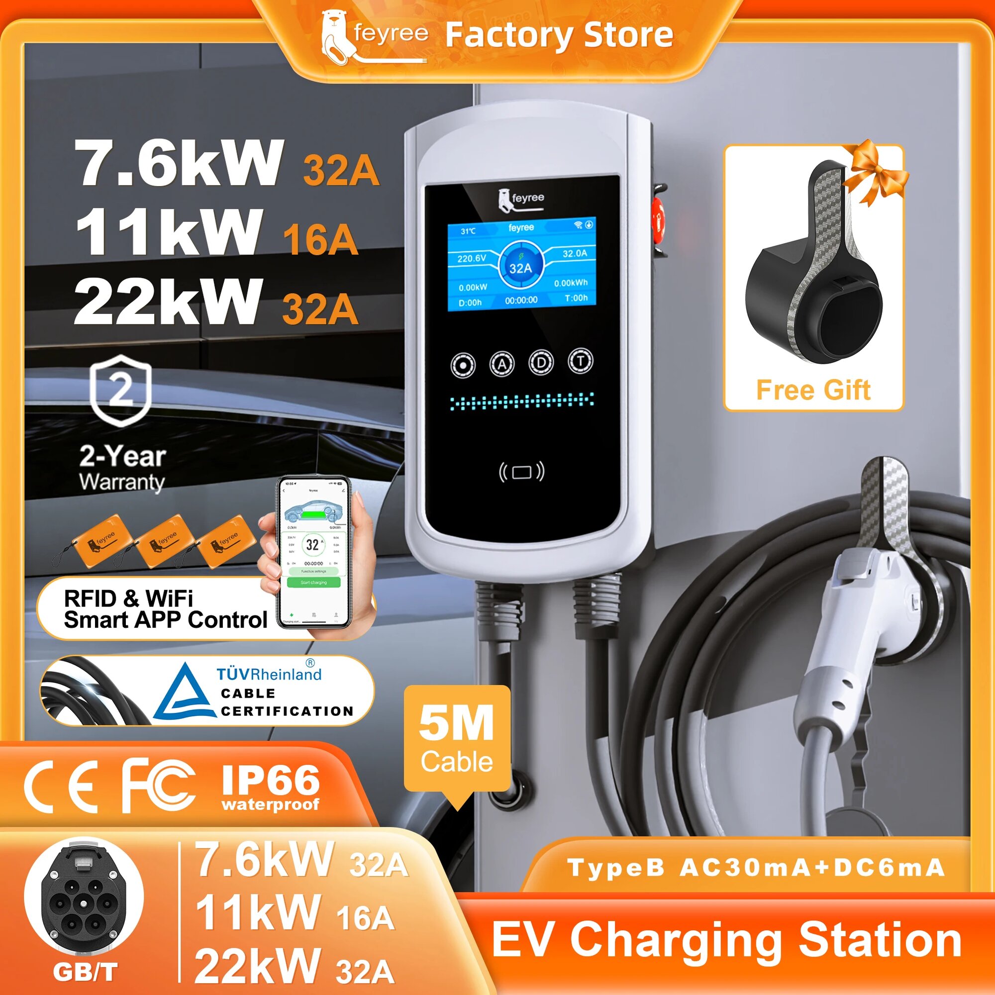 Купить Feyree Зарядное устройство для электромобилей Wallbox GB/T, вилка 7,6 кВт, 32 А, 4,3-дюймовый большой экран, зарядная запись истории, 11 кВт, 22 кВт, 3-фазная зарядная станция 7.6KW 32A 1 phase с доставкой по всей России.