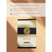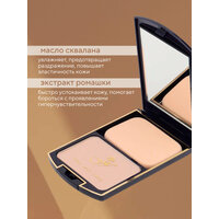 Разработана для двух видов использования. Нанесение сухим спонжем - пудра, дает характерный для пудры бархатистый макияж, кожа выглядит естественной, гладкой и молодой. Нанесение влажным спонжем - заменяет тональный крем. Корректирует недостатки, выравнивает тон кожи, придавая лицу сияние и нежный красивый оттенок. Не сушит кожу и не подчеркивает мелкие морщинки. Абсорбирует излишний блеск. Содержит светоотражающие пигменты. Предохраняет кожу от ультрафиолетовых лучей.