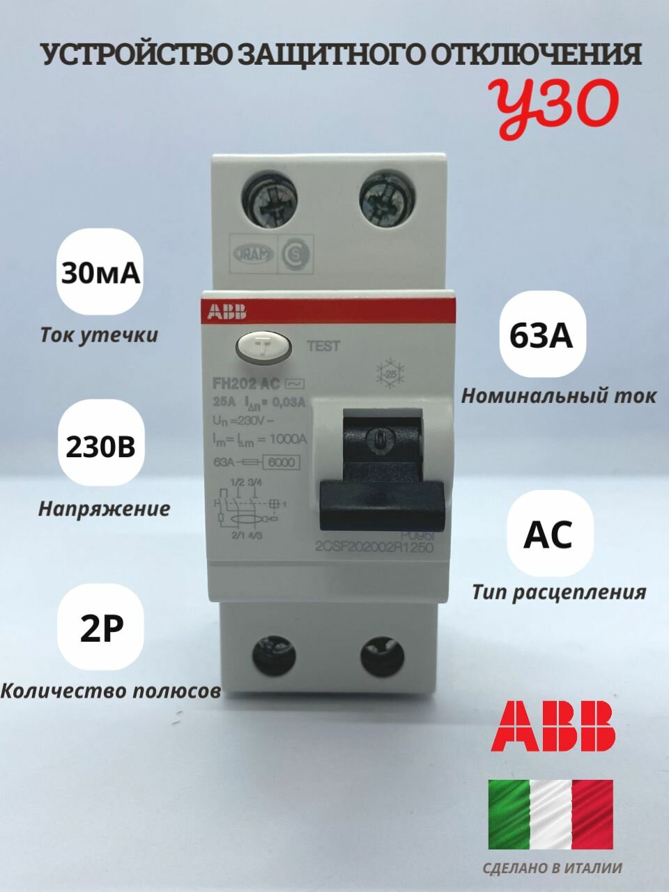 Устройство защитного отключения (УЗО) ABB FH202 2P 63А тип AC 30мА 6кА: сравнение цен, характеристики, фото, актуальное наличие и цены.