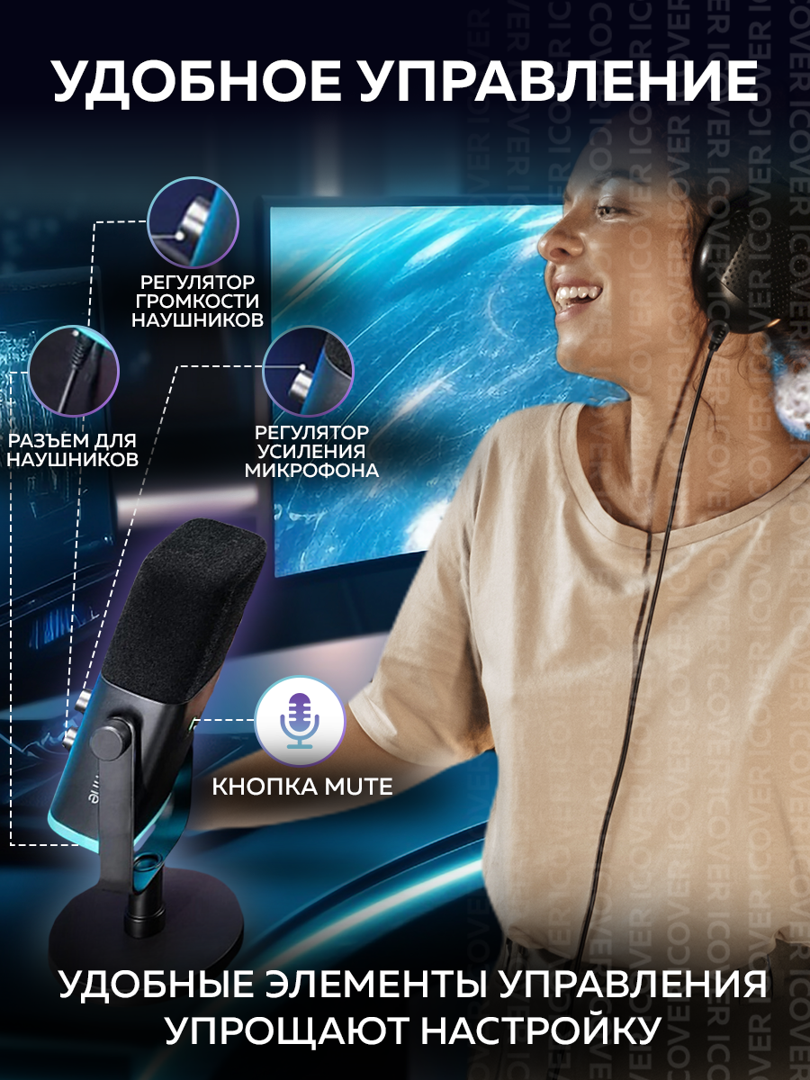 выход на наушники, кнопка отключения микрофона, шумоподавление