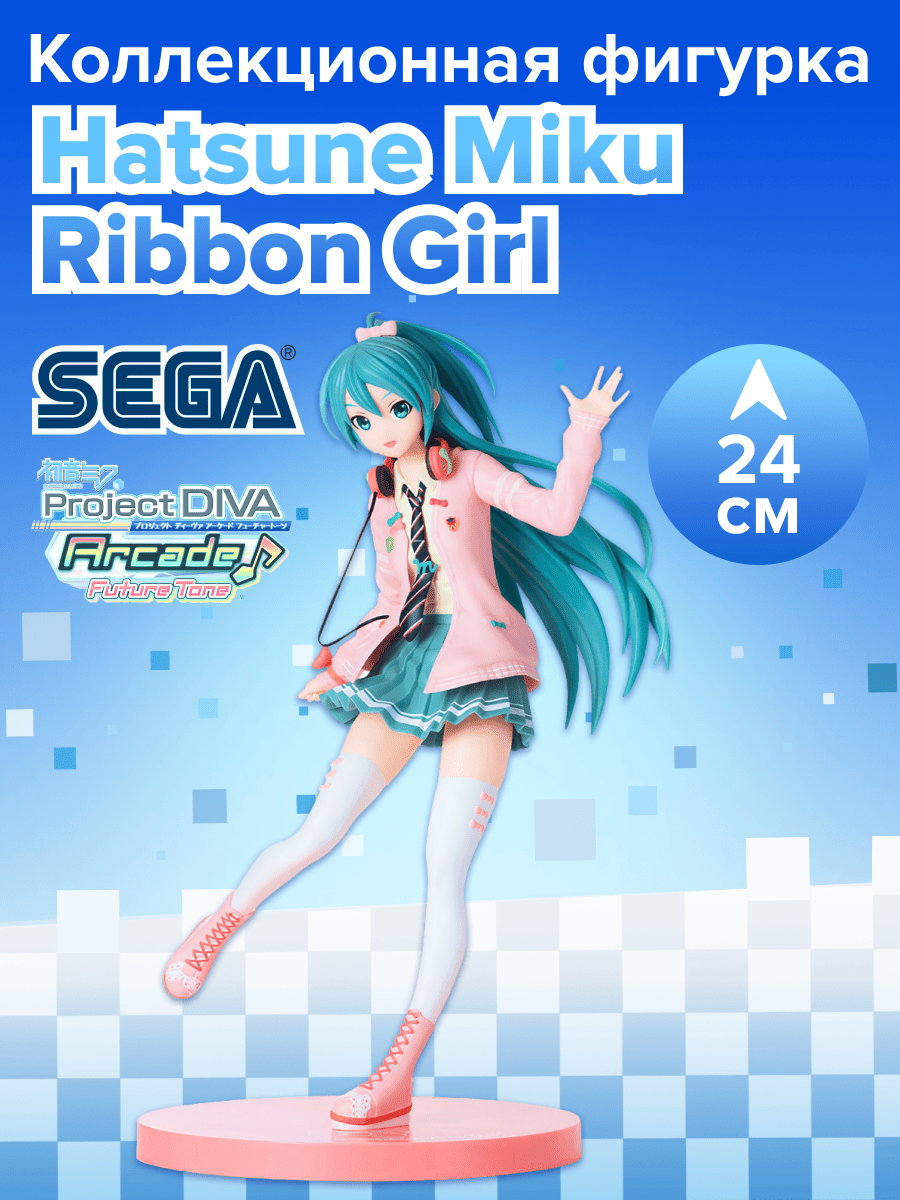 Фигурка SEGA Hatsune Miku Ribbon Girl 24см 4582733440187 выполнена в виде виртуальной японской певицы. Характеристики: