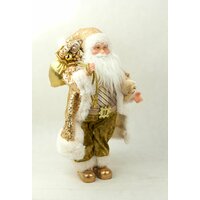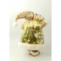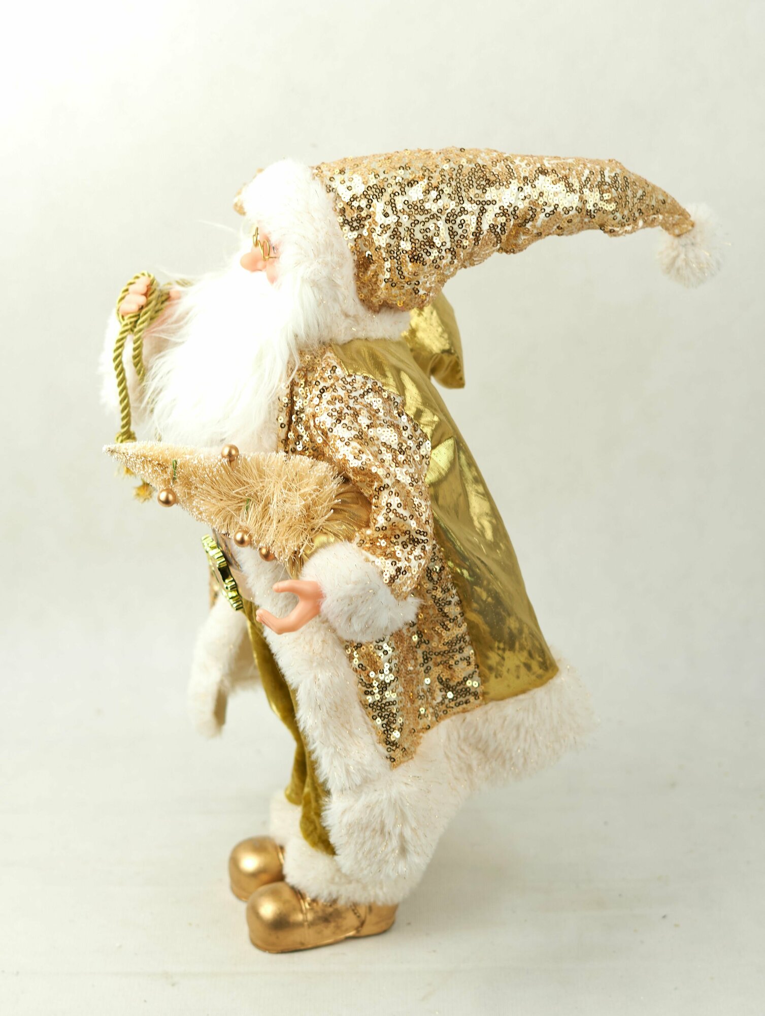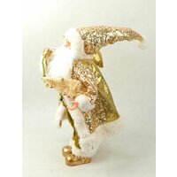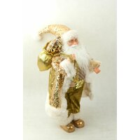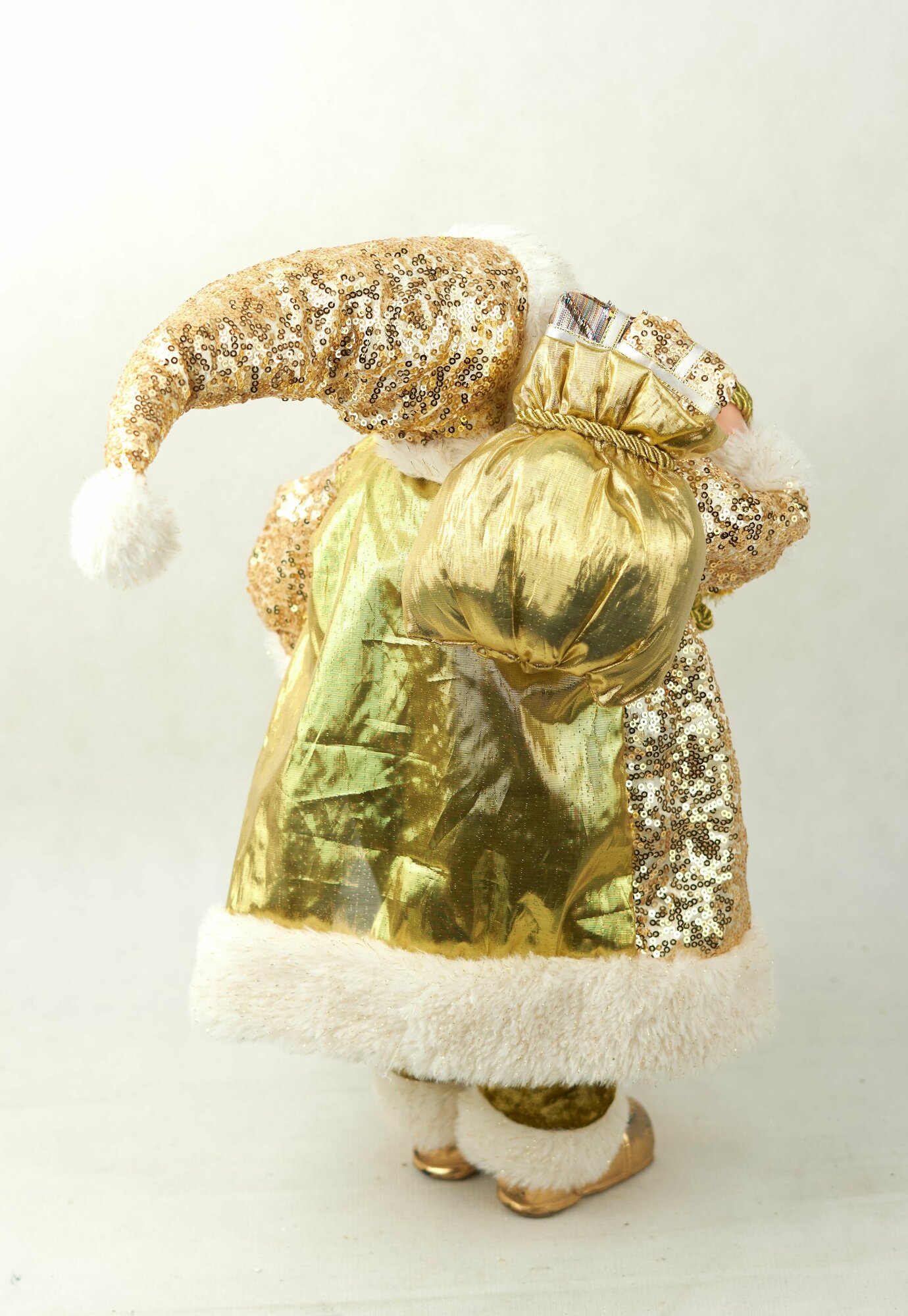 Фигурка выполнена в классическом стиле Деда Мороза, что делает ее узнаваемой и любимой многими. Золотистый цвет придает ей особый шарм и делает ее заметной на любом фоне.