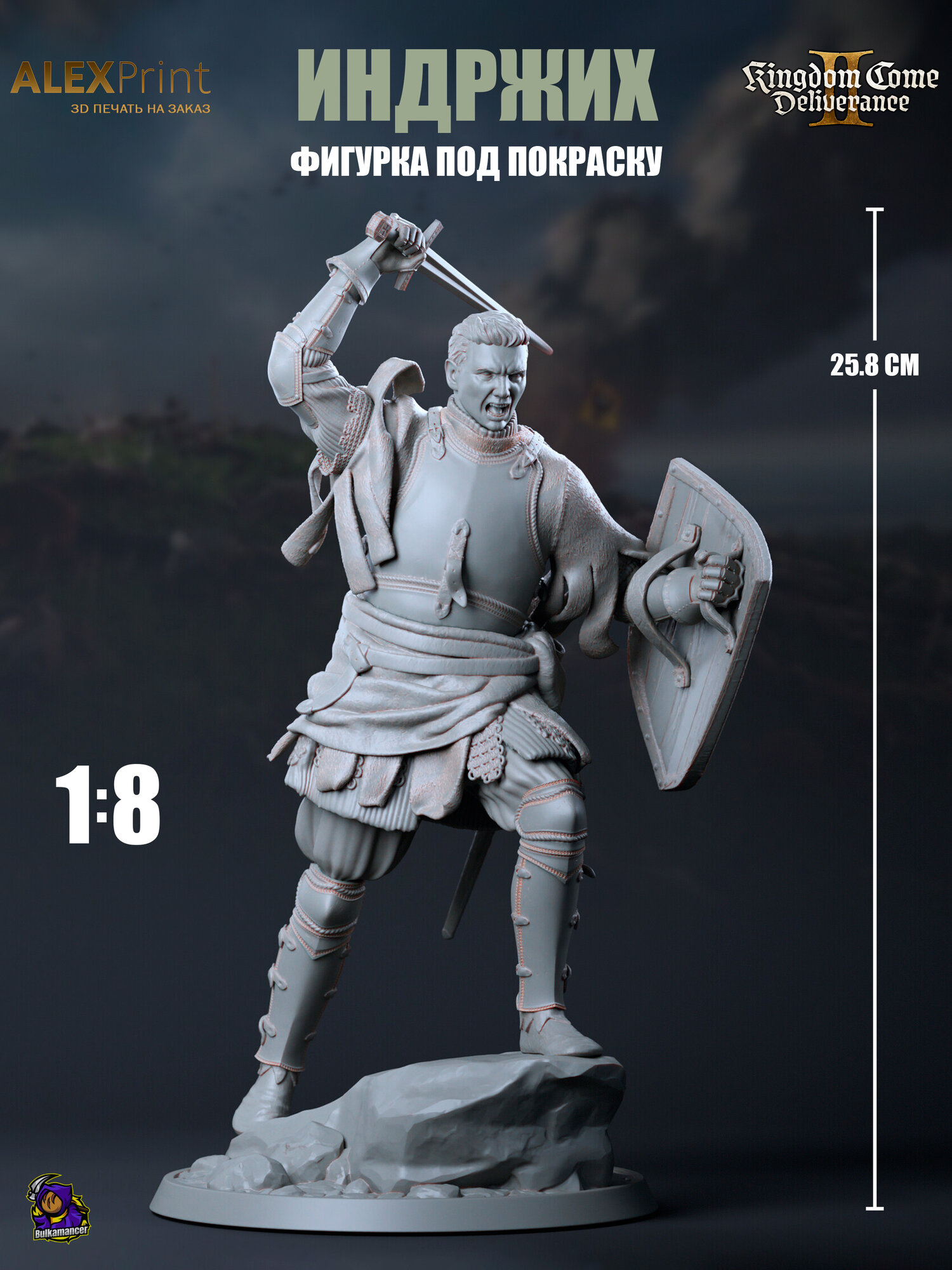 Данная фигурка станет отличным дополнением к вашей коллекции или замечательным подарком для друзей, увлекающихся моделированием и играми. Она также подходит для участия в конкурсах по моделированию и покраске. Погрузитесь в атмосферу средневековой Европы с этой непревзойденной фигуркой, станьте частью мира Kingdom Come: Deliverance II, создавая собственные шедевры.