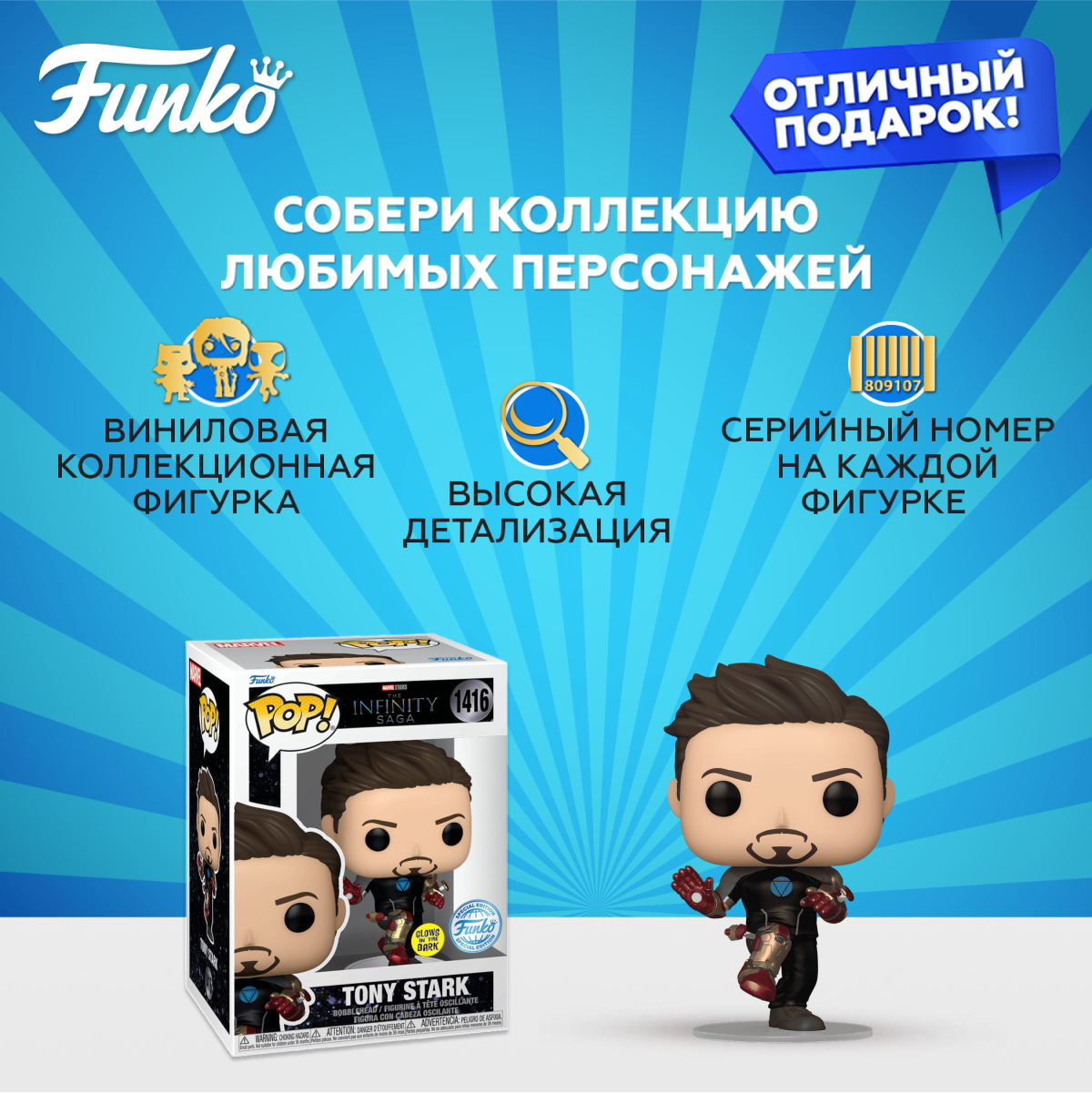 Фигурка Funko POP! Bobble Marvel Infinity Saga Iron Man 3 Tony Stark (GW) (Exc) (1416) 82769 по мотивам вселенной "Марвел". Характеристики: